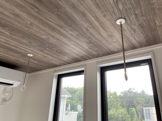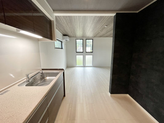 キッチン部分の天井はまた違う雰囲気のものを使用!
