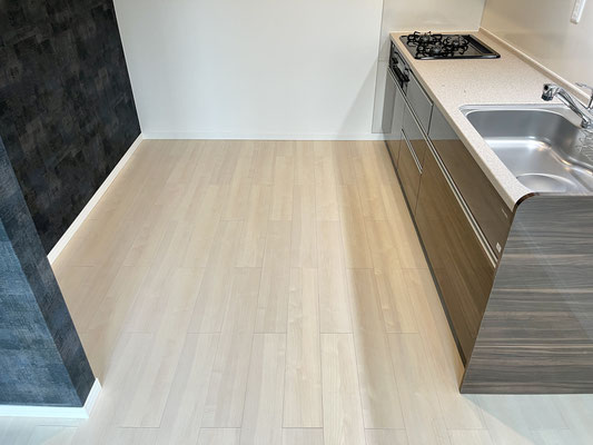 LDKの一角にあるキッチンスペースは広々としていて、冷蔵庫や収納家具を置いても伸び伸び調理が出来そう!