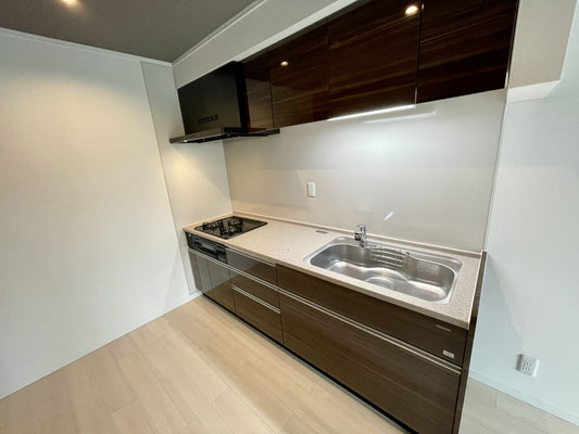 まるで分譲仕様のようなキッチンはお手入れもしやすく、収納も十分にあります。