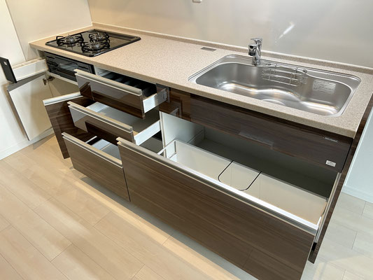 濃いめのブラウンキッチンはタカラスタンダード製!