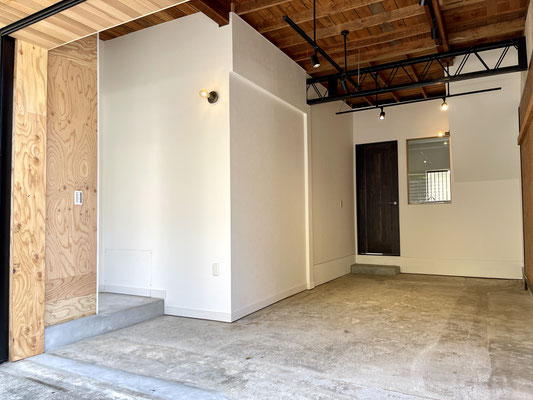 入ってすぐのドアの横にはガレージが見渡せる窓があり、居室にいながら愛車を眺めることが出来ます。