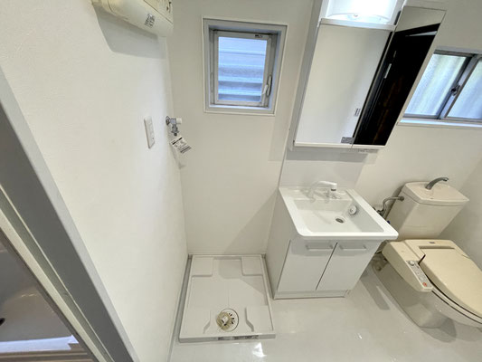 トイレ、洗面台、洗濯機置場が並んだ脱衣スペースは使い勝手も良さそうです♪