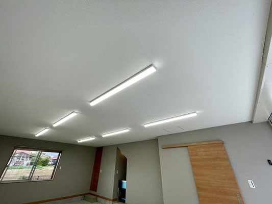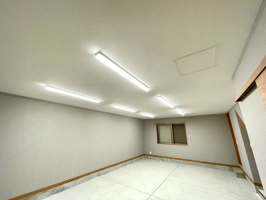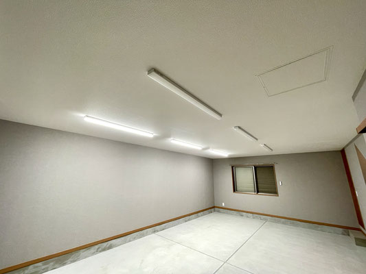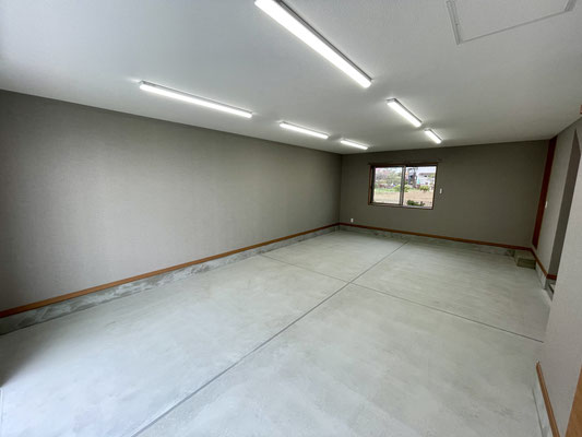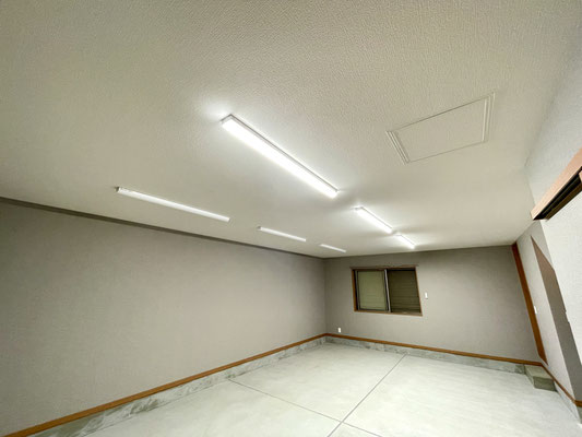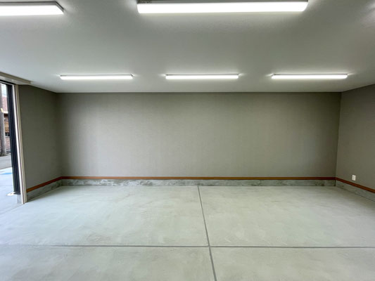 ガレージ内には明るいLED照明が設置されていて、夜間や曇りの日でも視界がしっかり確保でき、安心して作業ができます。