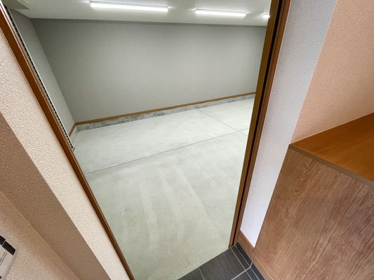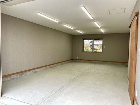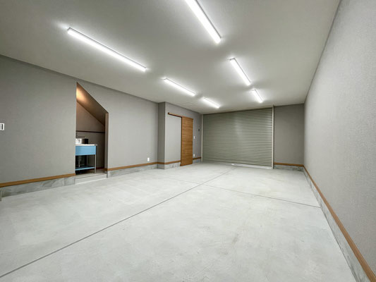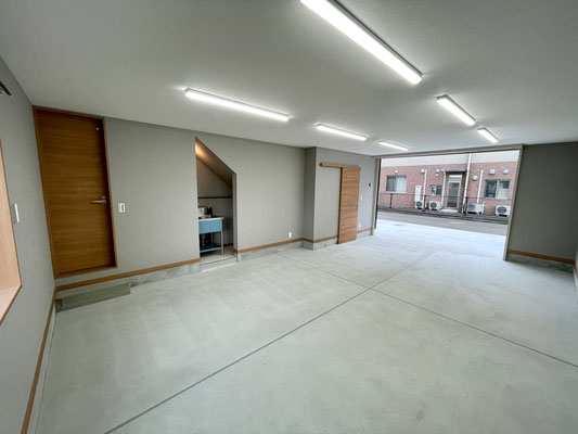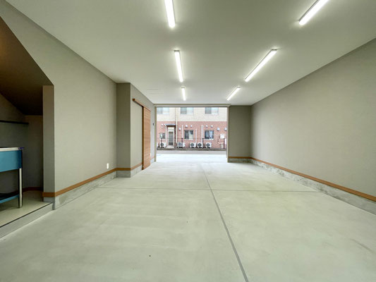 リモコン式電動シャッターを開けると、ガレージはこんな感じ~