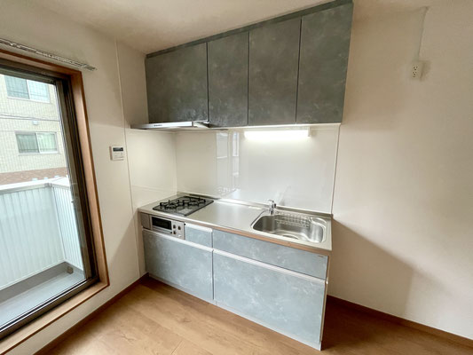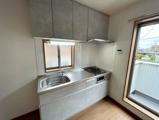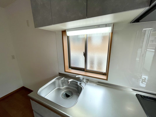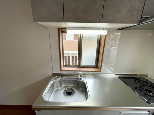 角部屋ならではの特権として、キッチンにも窓が付いていて、自然光が入る明るい空間になっています。