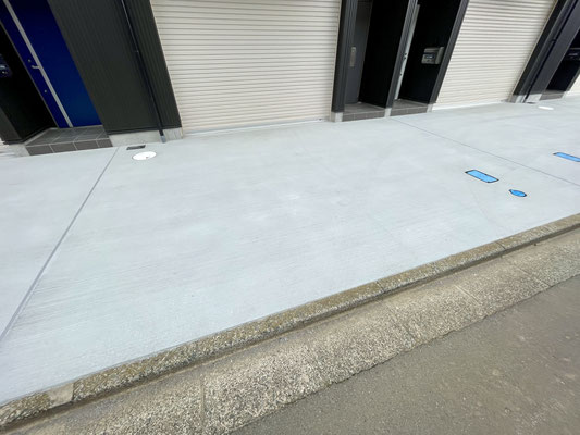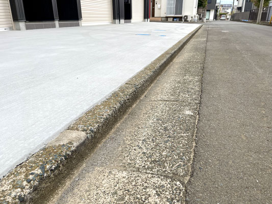 前面道路と敷地との間には少し段差があるため、車高の低い車の場合はスロープを用意しておくとより安心。