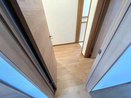 2階の廊下には3つの扉が並んでいて、生活動線がコンパクトにまとまっています。