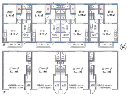 ガレージのサイズは32.13㎡ シャッター間口が約3m