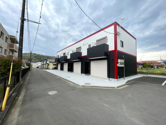 建物は左からA、B、C、D号室の並びになっています。