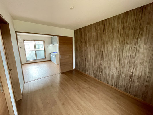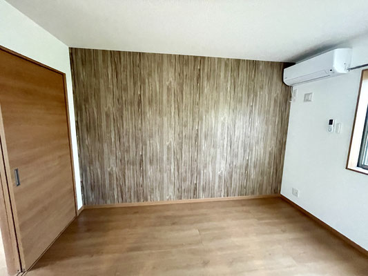 ウッド調のアクセントクロスが木目の質感を活かして、くつろぎ感を高めてくれます。