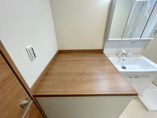 また、洗面台の隣にはちょっとした台もあります。
