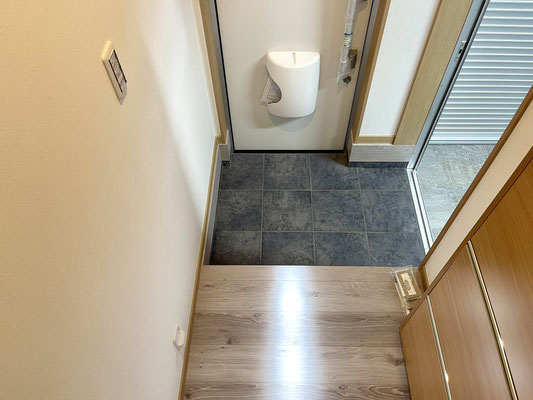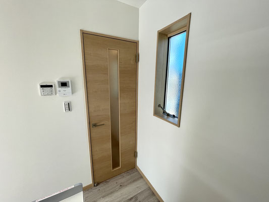 2階の踊り場にはトイレに通じる扉があります。