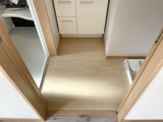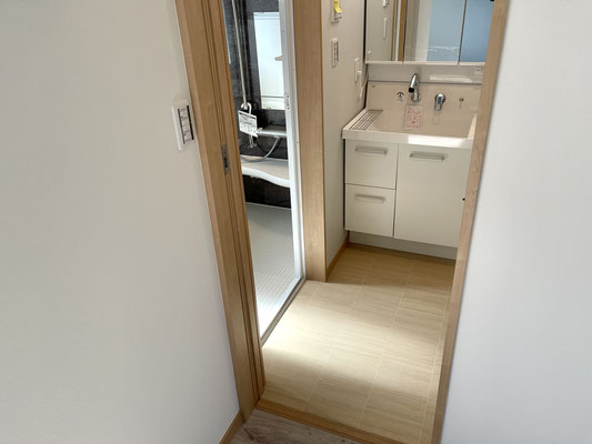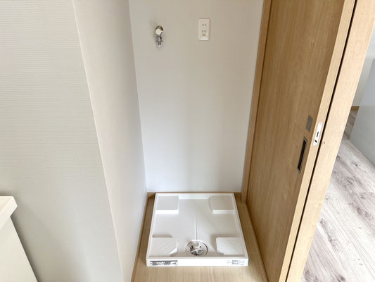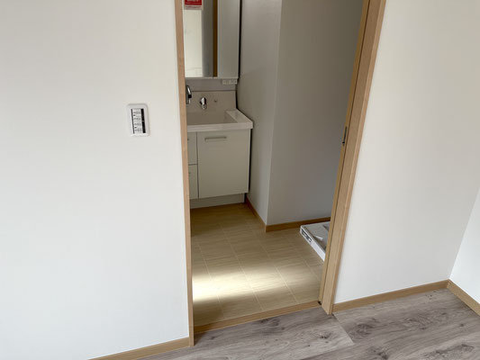 お部屋の中にある扉を開けるとそこには独立洗面台と洗濯機置場がある脱衣所。
