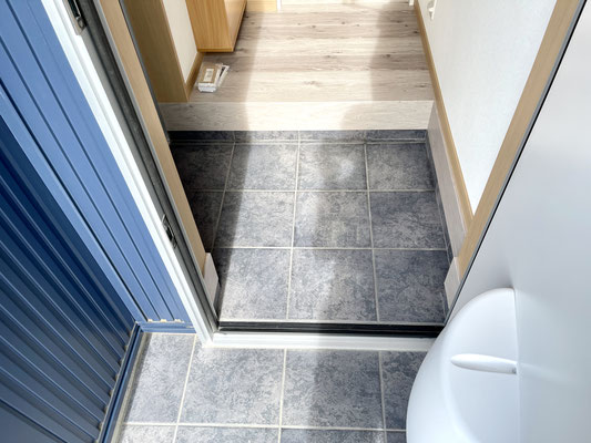 入ってすぐ左手にはガレージと通じている網戸付きのスライドドア〜