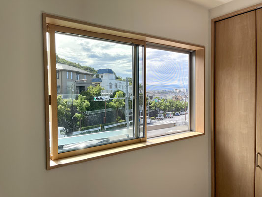 窓サッシもコダワリのウッド調です。