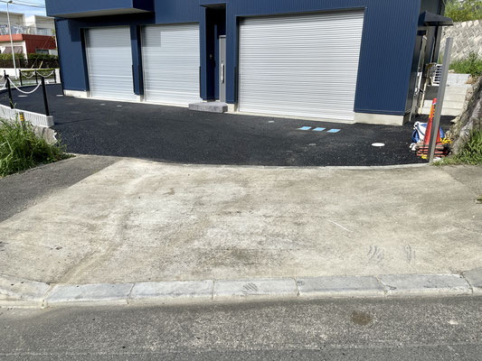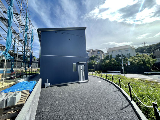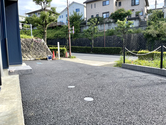 道路からのアプローチは多少の傾斜がありますが、外構工事でもう少し緩やかな傾斜にするとの事。