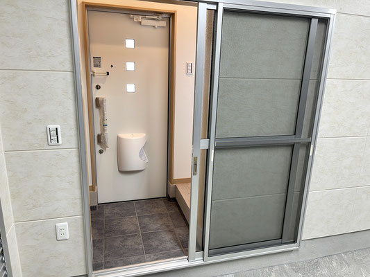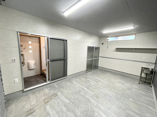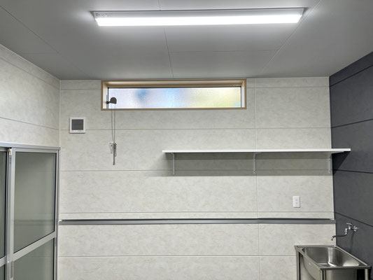 床はタイル張りで天井にはLEDの照明も付いています。
