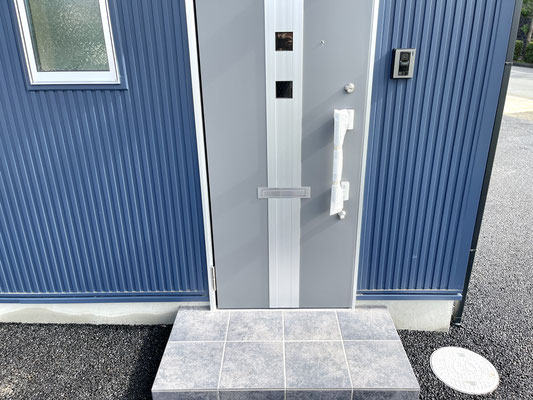 玄関ドアはシャッターがある面の横の面にあります。