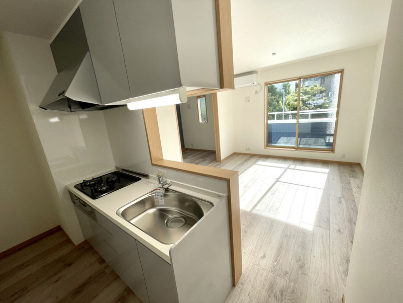 そう、こちらのお部屋はキッチンとの空間分けをしている対面キッチンなんです♪