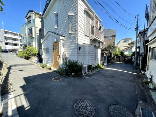 建物の前面道路は90度に折れ曲がった先で行き止まりになっている袋小路。