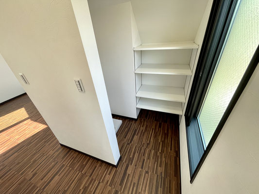 中に入ってすぐ左手には階段下を利用した下駄箱収納!