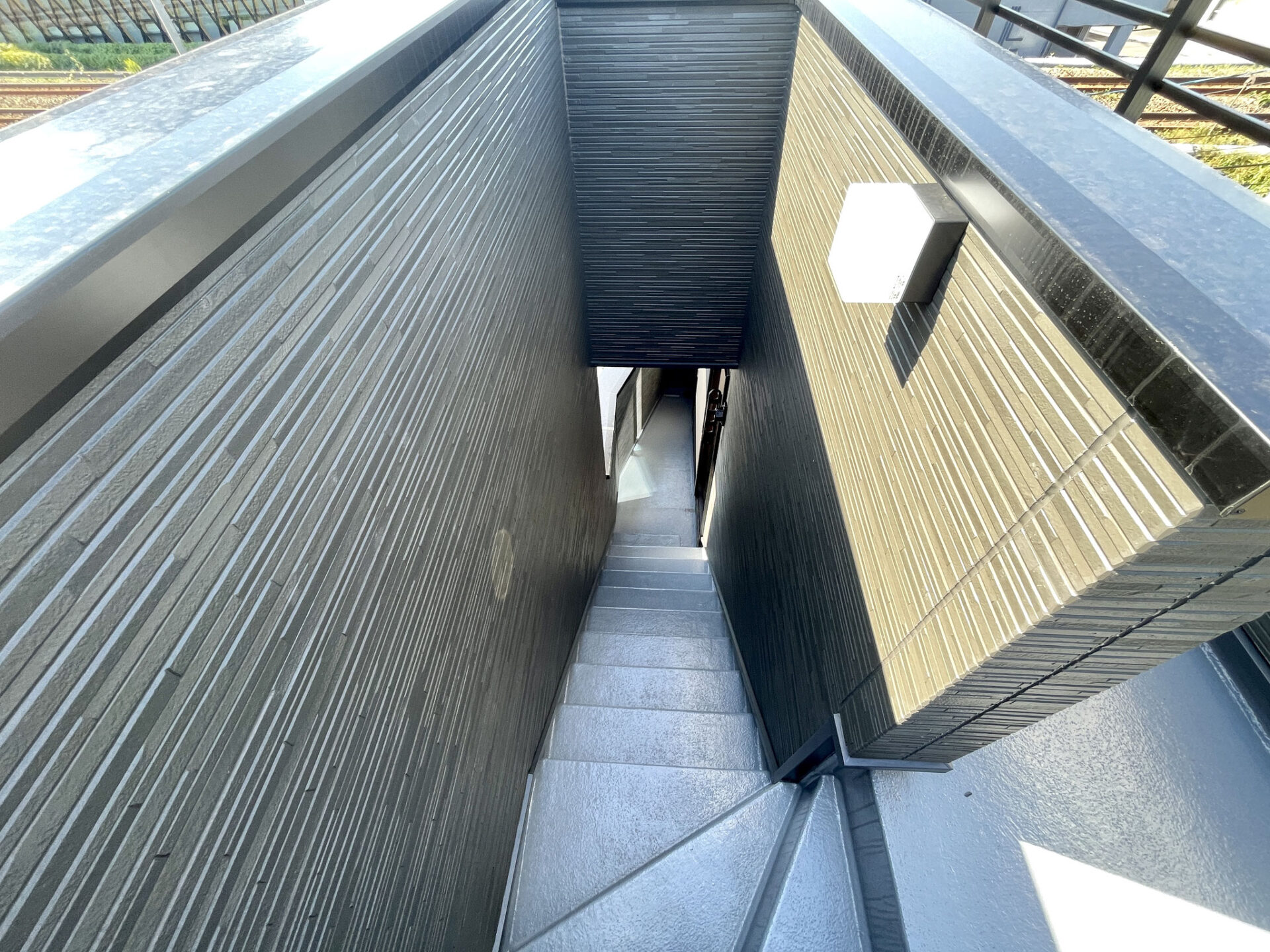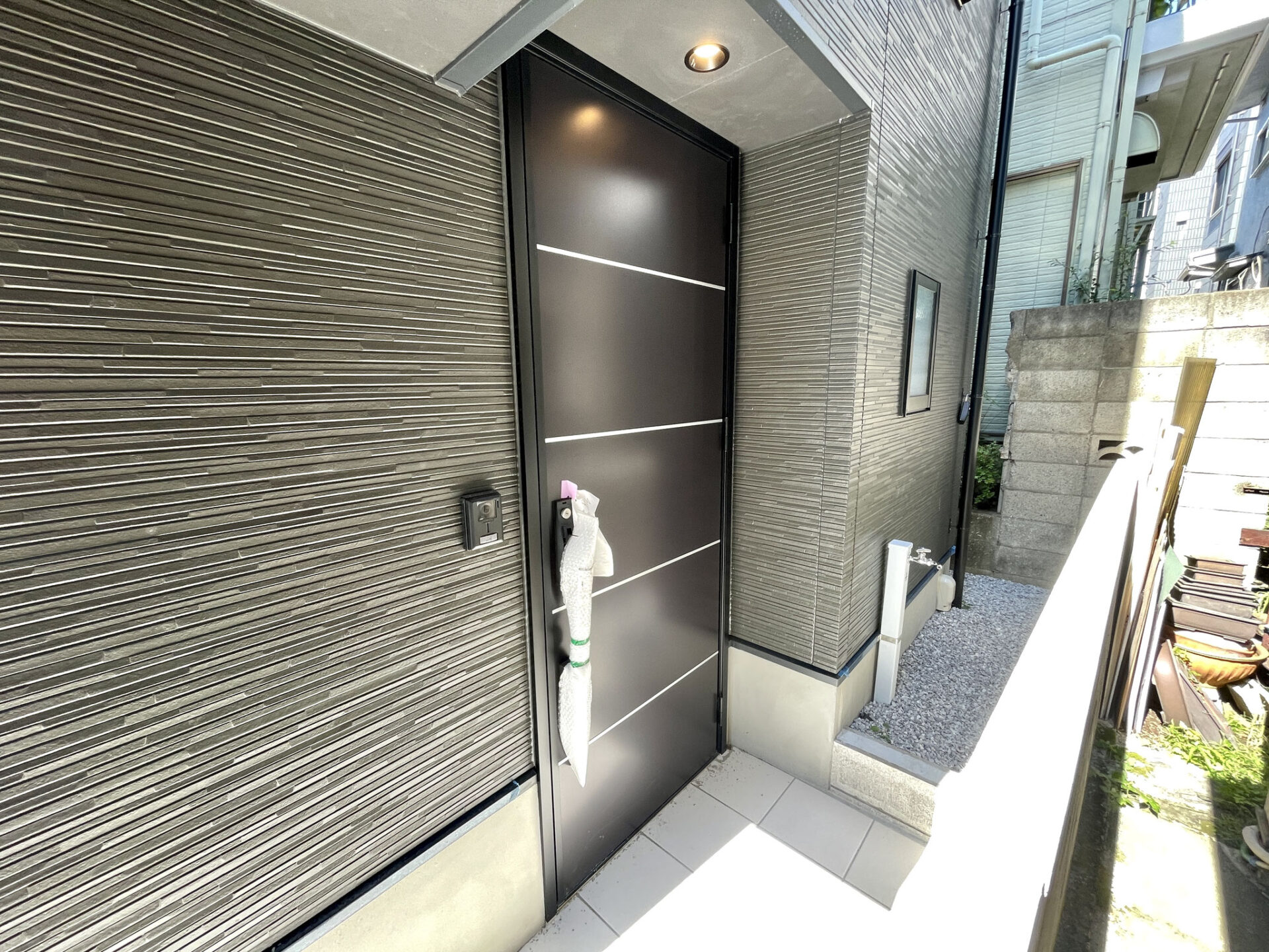 玄関ドアは建物の裏手、道路から専用通路を通ってアプローチ出来ます。