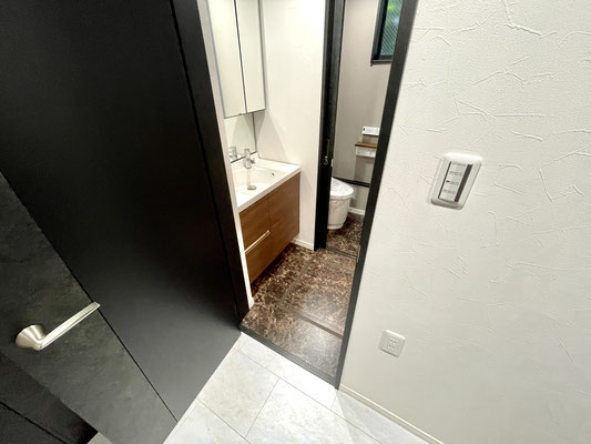 玄関ホール右手のドアを開けると水まわりにアプローチ!