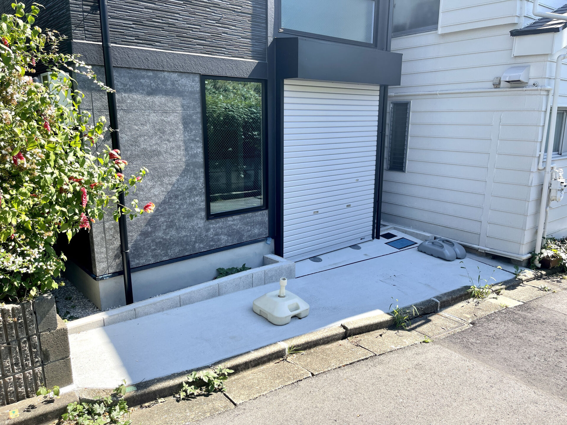 シャッターがある1階部分は外壁カラーが変わっていてアクセントになっていますね〜