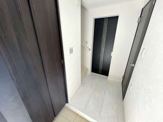 玄関ホールには2つのドアがあり、正面のスライドドアは土間スペースにアプローチ出来ます!