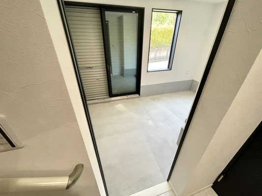 土間スペースをガレージとして使う場合はシャッターのすぐ内側のガラスドアを外して