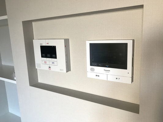 その隣には大型モニターのインターホンとセコムの端末。