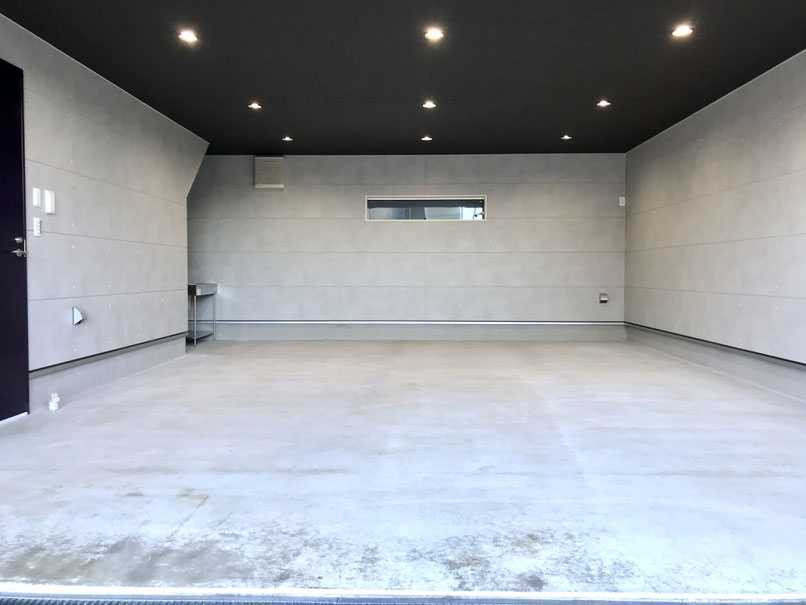 小型のクルマなら2台は停められそうな大型ガレージ。