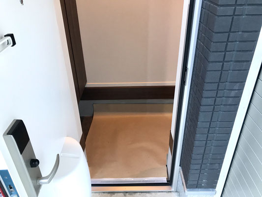 玄関に養生がしてありますが、こちらの物件は安心の新築です♪