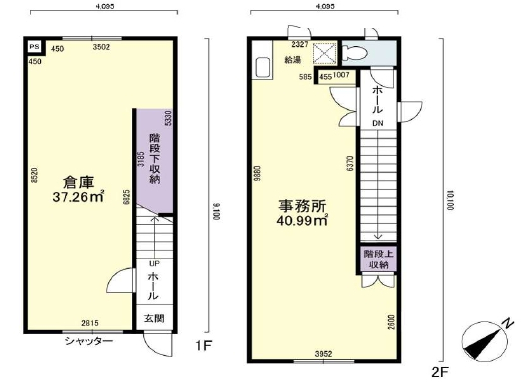 広さは40.99㎡あり、ガレージ同様奥行きがあります。