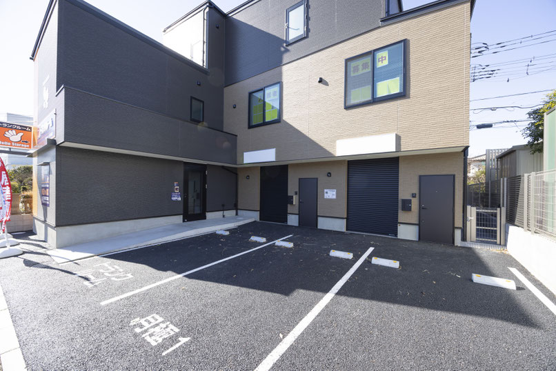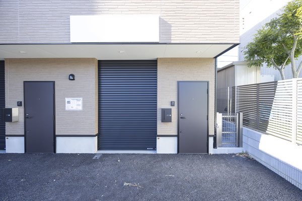 今回ご紹介するのは、電動シャッター付きバイクガレージを備えた貸事務所。