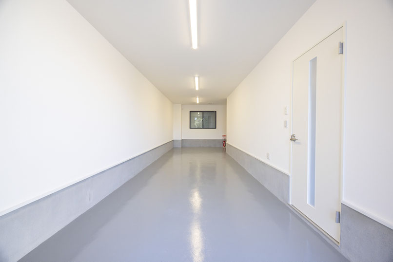 こちらも1号室と同じく、壁と天井が真っ白で清潔感のあるガレージですね!