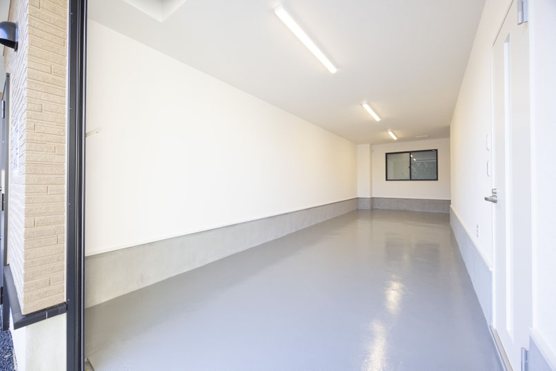 1号室の電動シャッターを開けるとガレージ内部はこんな感じ〜