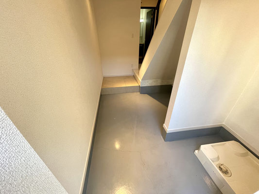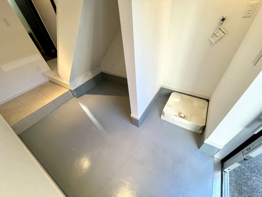 ガレージ内には入ってすぐに洗濯機置場もあります。