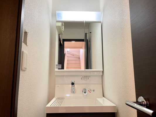 その先の扉は独立の洗面台。