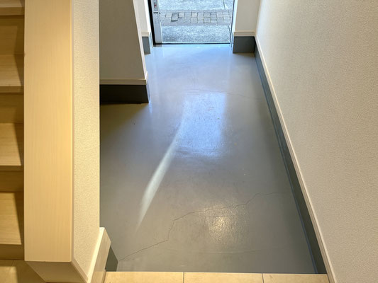 スライド式の玄関扉を開けると中のガレージはこんな感じ〜