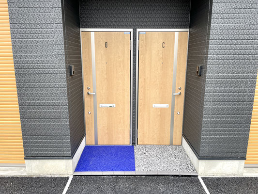 玄関ドアにはわかりやすく部屋番号が明記。