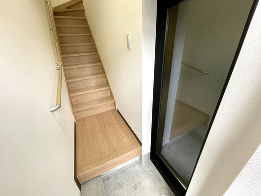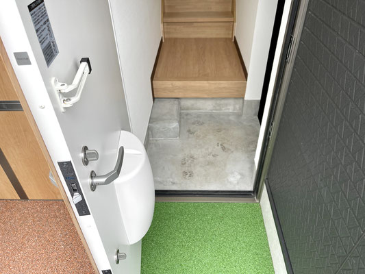 玄関はシャッターのすぐ隣にあります。
