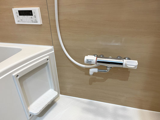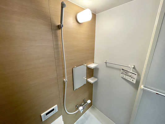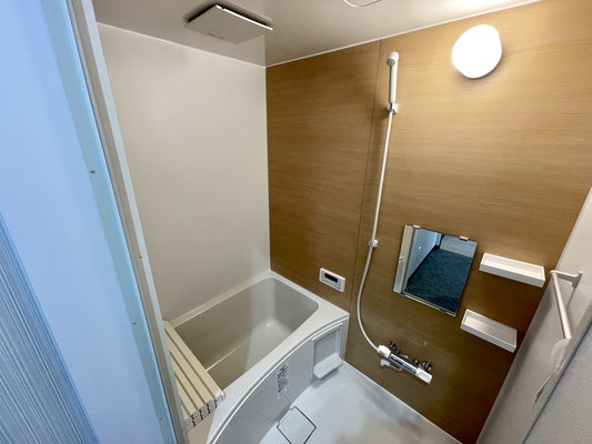 こちらはナチュラルな色合いのウッド調でとても落ち着くバスルームです。