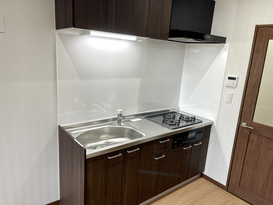 お部屋の中には使い勝手が良さそうなシステムキッチン。