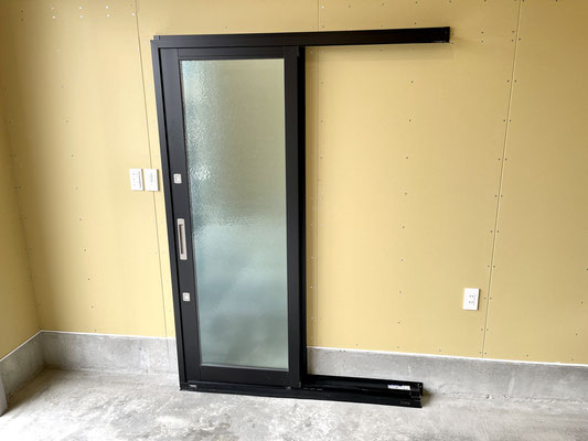 玄関ドアを開けるとすぐ右手にガレージに通じるスライドドア。