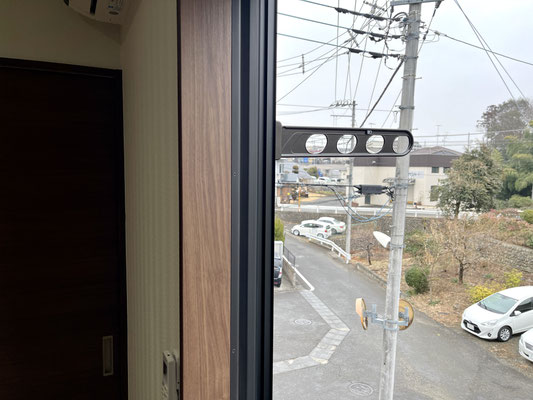 こちらの物件にはベランダはありませんので、洗濯物は窓にある物干しスペースに。