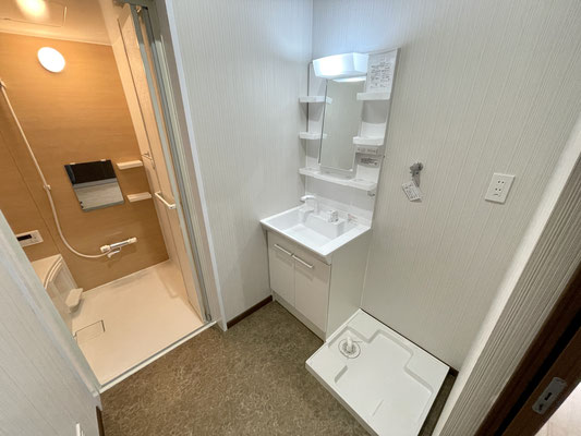 独立洗面台や洗濯機置場がある脱衣所。