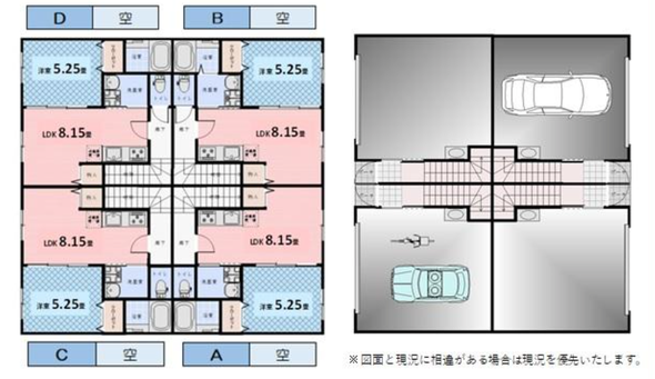 それぞれの物件は隣同士や背中合わせにくっついている4戸イチ物件なんです。