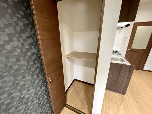 棚を置いて普段使わない物を置いとくのにも良いスペースですね〜
